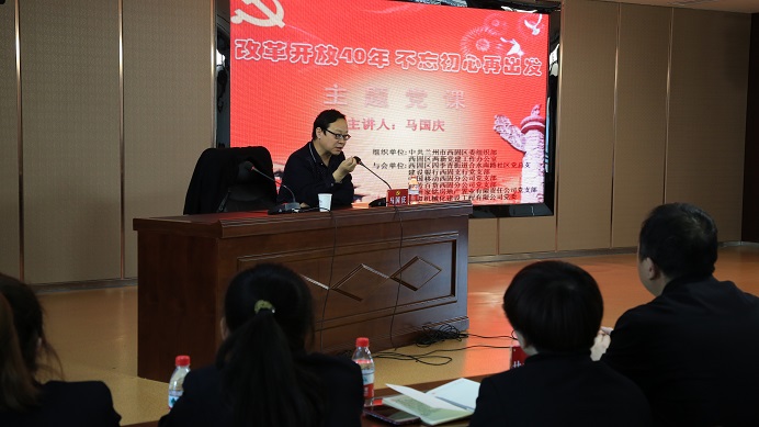為紀念改革開放40周年,進一步激勵黨員不忘初心、牢記使命。 11月28日,公司黨委牽頭舉辦了 “改革開放四十年 不忘初心再出發(fā)”的主題黨課。120余名黨員在我司大會議室聆聽了講座。本次主題黨課在蘭州市西固區(qū)委組織部和西固區(qū)兩新黨建辦公室指導(dǎo)下開展,本樓宇內(nèi)5家單位以及兩新辦和社區(qū)共同參與。組織這種形式的大黨課,就是貫徹落實全區(qū)組織工作會議精神,加強“五化五強”黨支部建設(shè),推進街道社區(qū)黨建、單位黨建、樓宇黨建互聯(lián)互動,努力提升城市基層黨建工作水平。