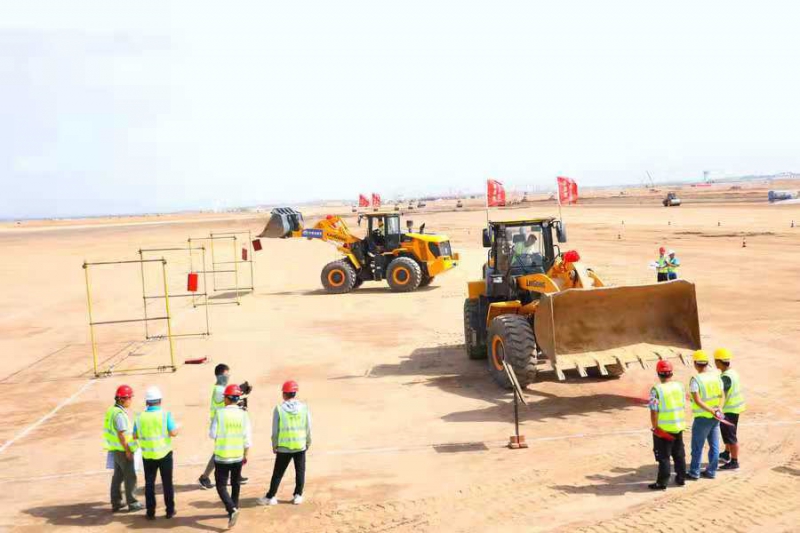 來自8家參賽單位的64名建設者參與比賽,競賽內容包括挖掘機、裝載機、推土機、平地機技能比試。活動現場,參賽選手個個精神飽滿,各顯身手,裝載機技能比試中選手精確熟練的操作著設備搬輪胎、修路推平、 刷坡面、鐵樹掛物 ,努力完成比賽要求的每一個步驟和環節,展現自己最好的技術素養和技能水平。他們以良好的精神面貌賽出風格、賽出水平,把技能競賽作為學習交流的重要平臺,不斷提升個人專業技術水平,為中川機場建設做出更大的貢獻。