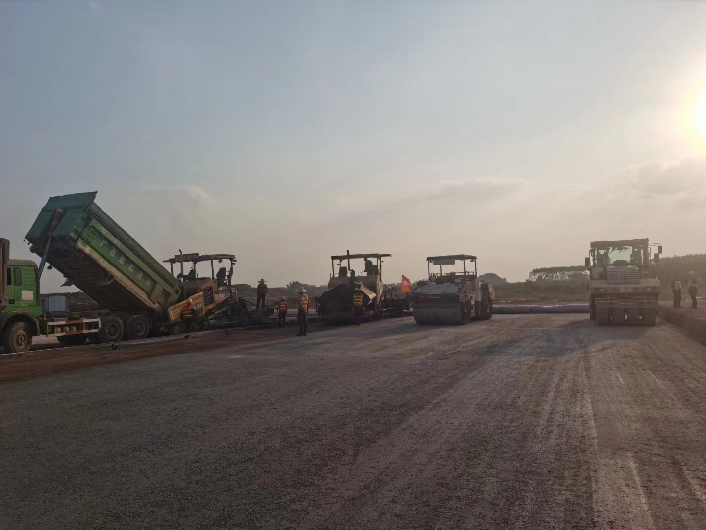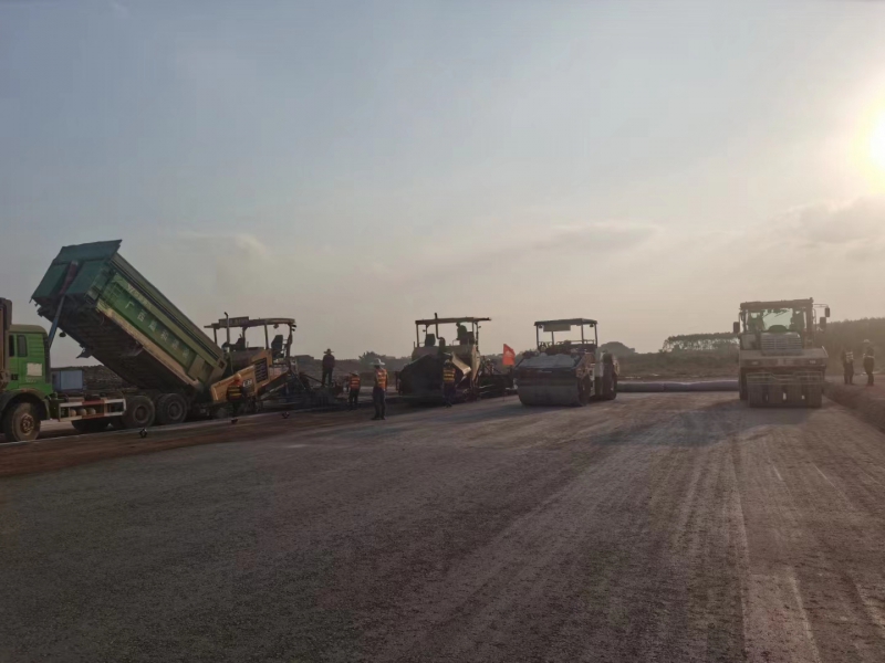 11月28日,隨著第一車水泥穩(wěn)定砂礫混合料倒入攤鋪機(jī),攤鋪機(jī)緩緩啟動(dòng),標(biāo)志著由我司承建的南寧吳圩機(jī)場(chǎng)改擴(kuò)建工程飛行區(qū)場(chǎng)道工程(四標(biāo)段)水穩(wěn)基層試驗(yàn)段施工正式開始。