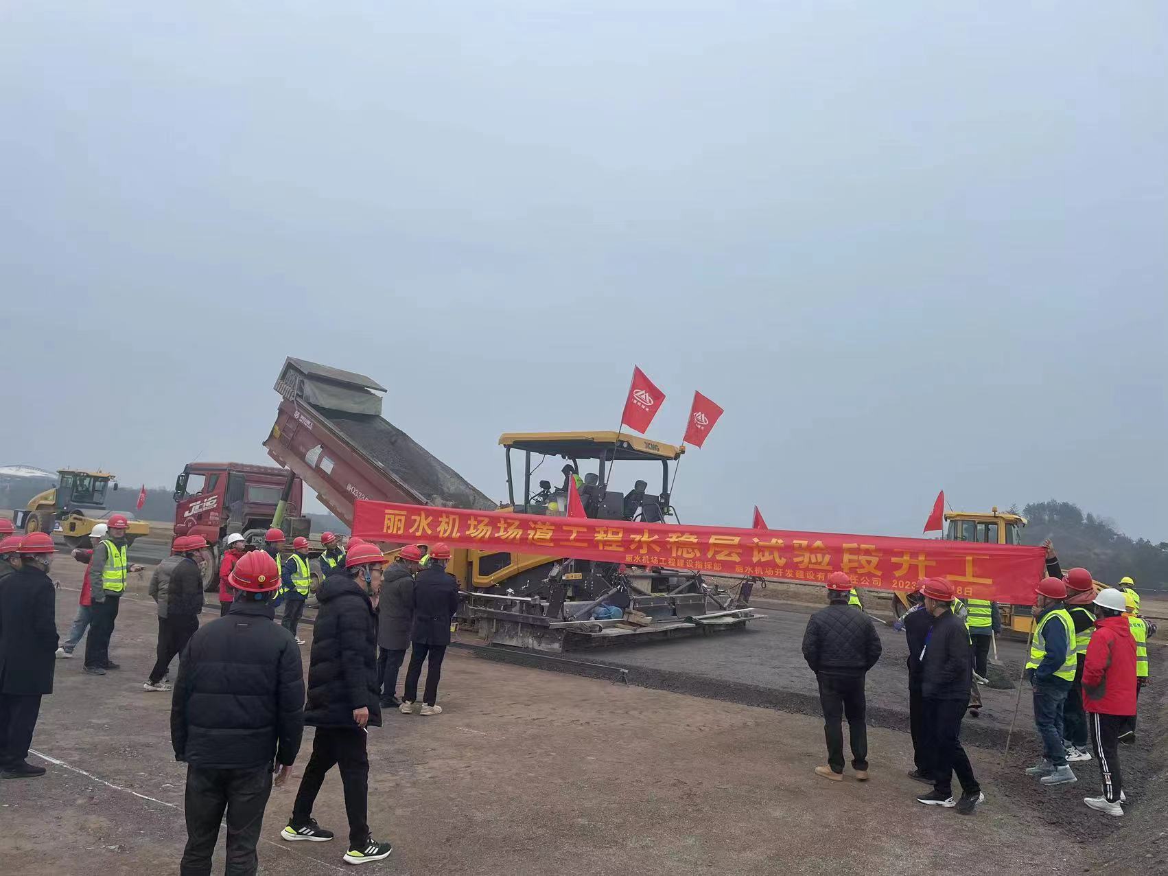 麗水機場場道工程水穩基層試驗段施工全面開始