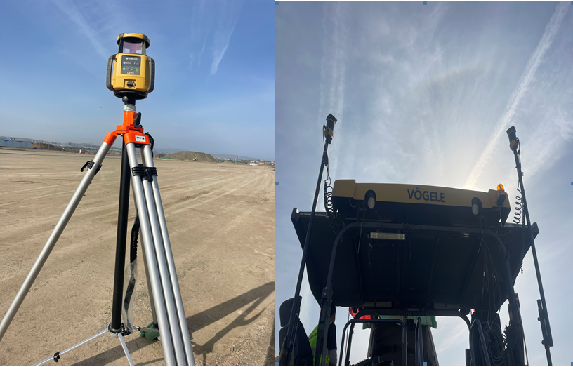 我司首次在烏魯木齊機場使用mmGPS 3D攤鋪技術(shù),mmGPS 3D攤鋪技術(shù)是指通過衛(wèi)星全球?qū)Ш蕉ㄎ幌到y(tǒng)和激光高精度測量系統(tǒng),立體控制攤鋪的高程精度和平面精度。該技術(shù)克服了常規(guī)掛鋼線施工時掛鋼線下垂、傳感器跳動等問題,同時減少了測量放樣的工作內(nèi)容,很好地控制了結(jié)構(gòu)層厚度、高程及平整度,尤其在多機聯(lián)鋪作業(yè)方式下效果明顯,實現(xiàn)了“機械化換人、自動化減人”的理念,減少了人員投入的同時減少了材料的浪費,降低了項目的安全風(fēng)險,產(chǎn)生了明顯的經(jīng)濟效益。
